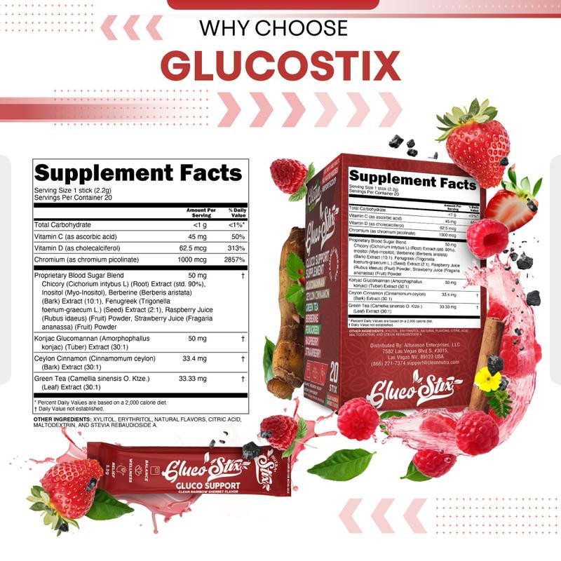Clean Nutra Gluco Stix – Berberine with Cinnamon & Fiber Sweet Fruit Flavored Syrup:_1 Pack (20 sticks)