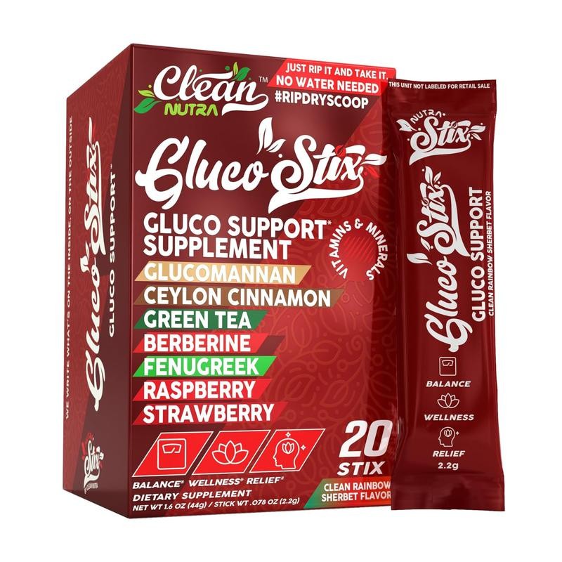 Clean Nutra Gluco Stix – Berberine with Cinnamon & Fiber Sweet Fruit Flavored Syrup:_3 Pack (60 sticks)