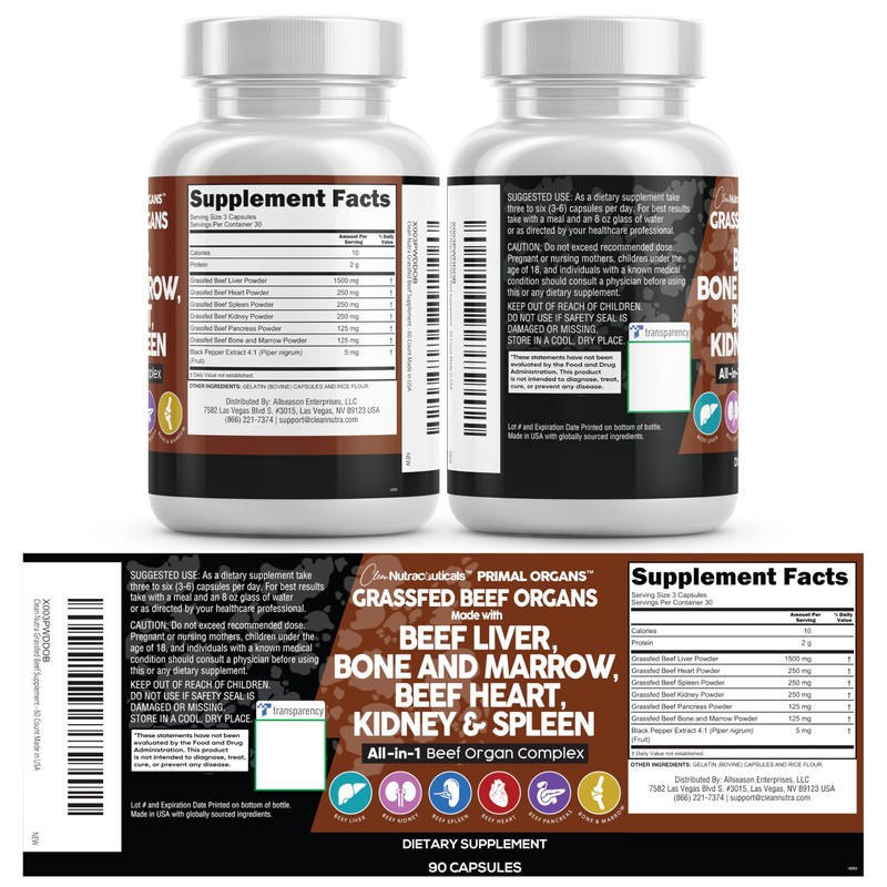 - Unparalleled Desiccated Beef Liver Capsules Organs Complex - With our grass fed beef liver capsules, you get an impressive 3000mg of beef organ nutrition. Each capsule is packed with desiccated beef liver, heart, spleen, pancreas, bone, and marrow, providing a powerhouse of nutrients for optimal health.