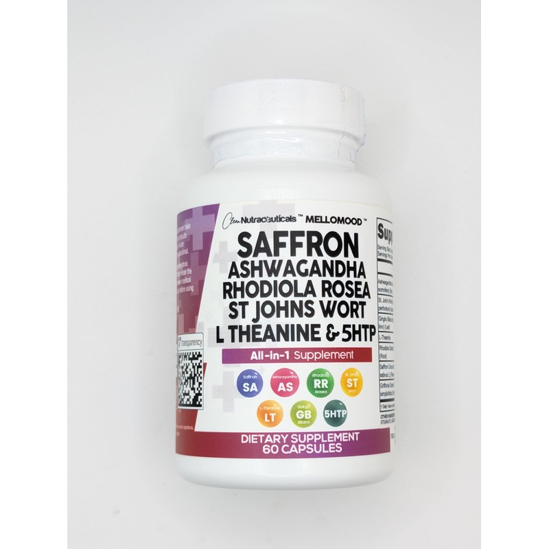 Clean Nutraceuticals Saffron Supplements with Ashwagandha - Mood Support with L-Theanine, Ginkgo Biloba, St. John's Wort, Rhodiola Rosea & 5-HTP - Saffron Pills