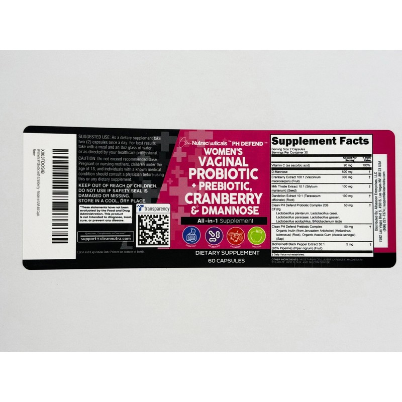 • PH Defend by Clean Nutraceuticals – 15-in-1 Women's Probiotic Supplement – Features 20 billion CFU, D-Mannose, cranberry extract, prebiotics, and support ingredients like milk thistle, dandelion, and black pepper. Not a gummy or vaginal insert—just targeted feminine wellness support in easy-to-take capsules. Feminine hygiene, UTI support, and odor balance in one trusted solution.