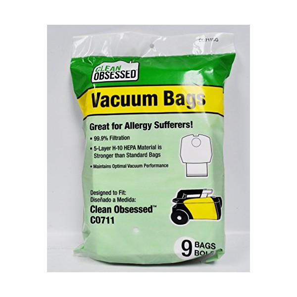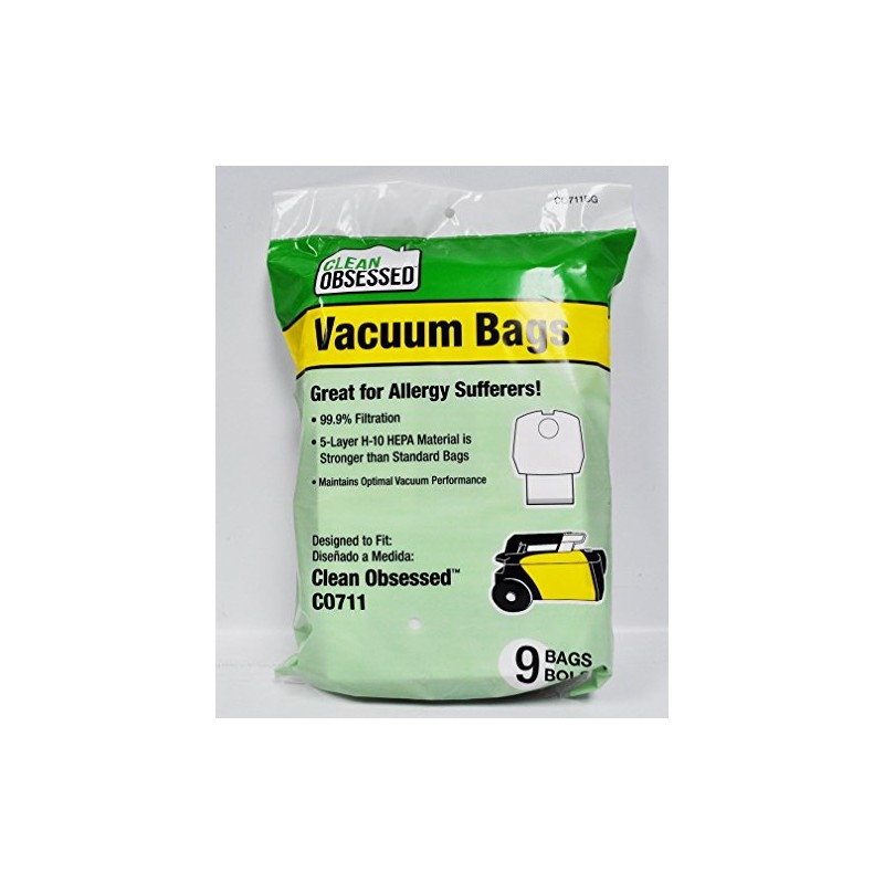 - *Fits Perfect Vacuum Commercial Canister Vacuum C105 *Fits Clean Obsessed CO711 Commercial Canister Vacuum*Great for Allergy Sufferers. 99.9% filtration. 5 Layer H-10 HEPA material is stronger than standard bags *Maintains optimal vacuum performance * 9 Paper bags in package.