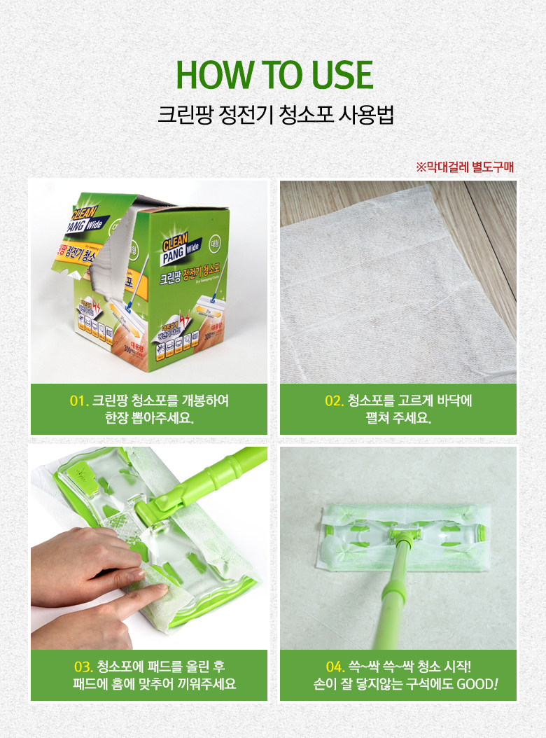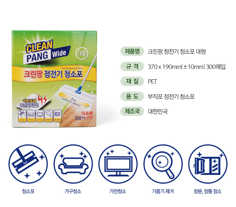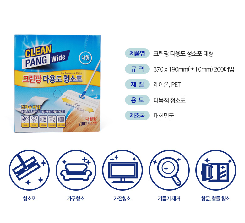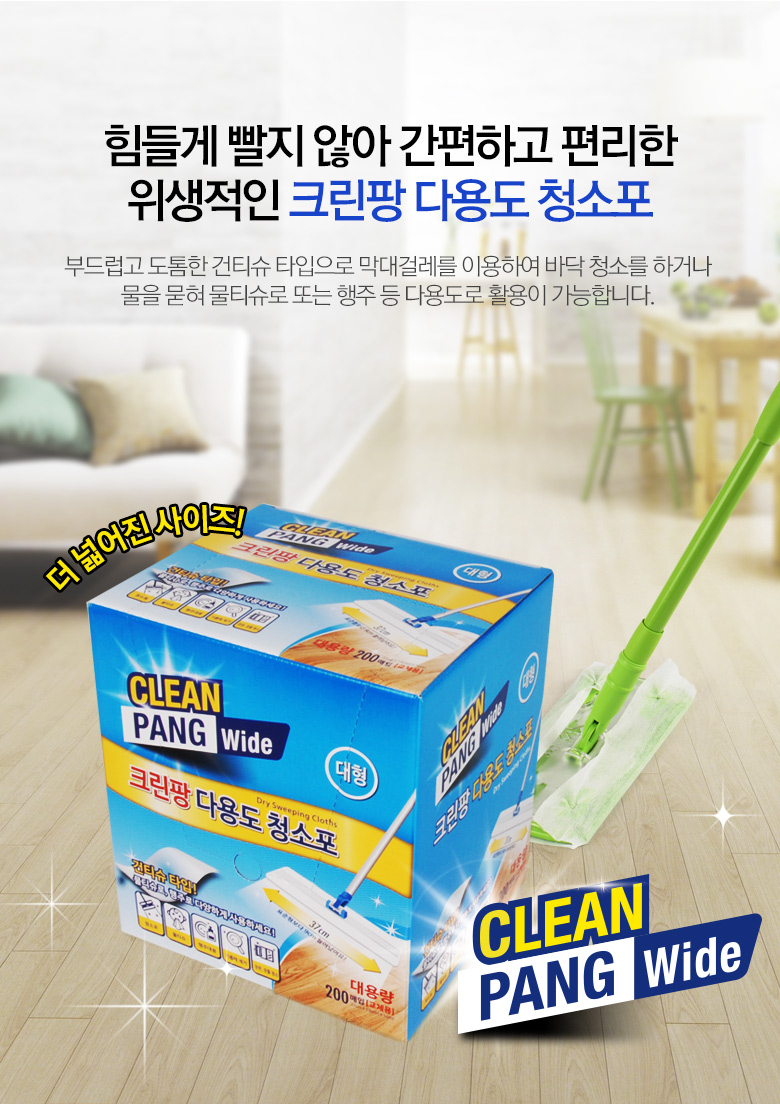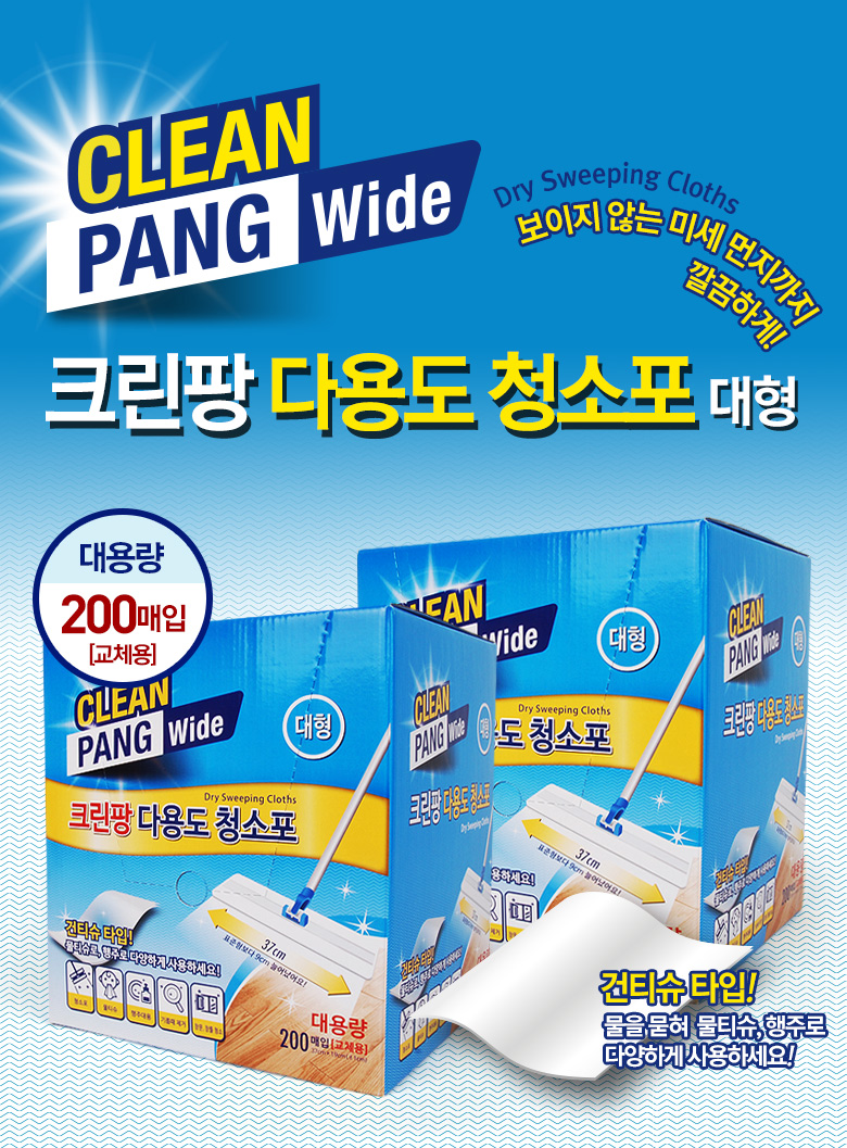 [Clean Pang] Large capacity multipurpose cleaning cloth (200 sheets) + electrostatic cleaning cloth (300 sheets) / [크린팡] 대형 대용량 다용도 청소포(200매)+정전기 청소포(300매)