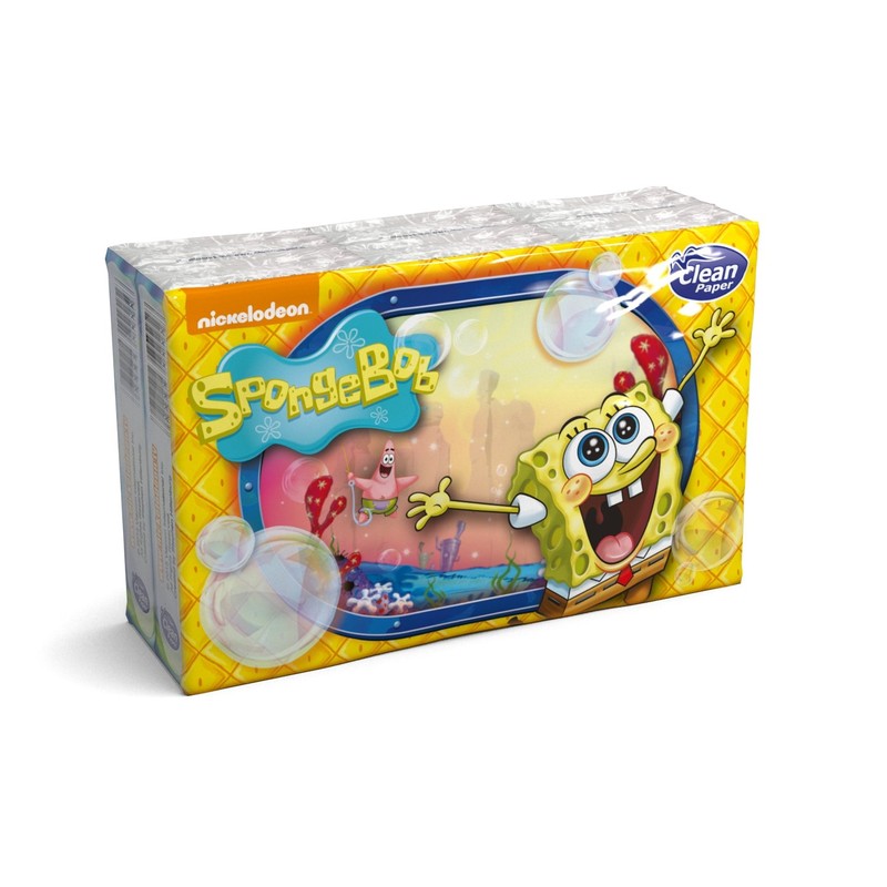 Clean Paper Nickelodeon Spongebob 4-Ply Pocket Tissues 6 Packs of 9 Tissues Decorated and Perfumed (54 Tissues in Total)