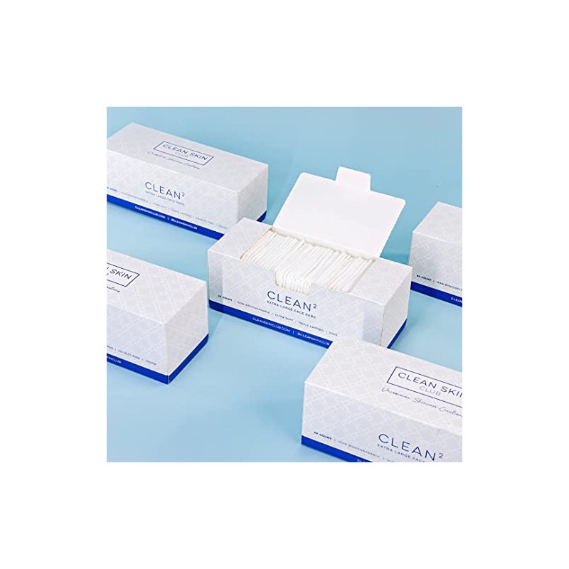Clean Skin Club Clean² Extra Large Face Pads, Guaranteed Not to Shed & Tear, Unique Triple Layers, Textured Side & Ultra Soft Side, Vegan Organic Disposable Cotton, Used with Makeup Remover (1 Pack)