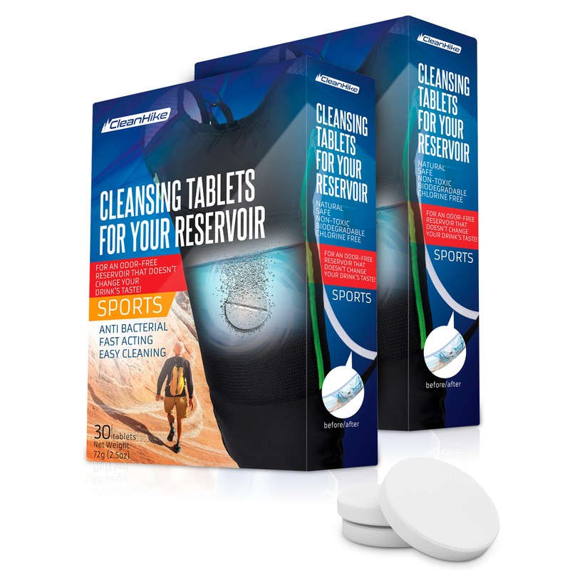 CleanHike Hydration Backpack Cleaning Tablets - Great for Reservoir Pack or Hydration Bladder Kit, Individually Packed, Quickly Removes Stubborn Stains & Odors (60 Tablets)
