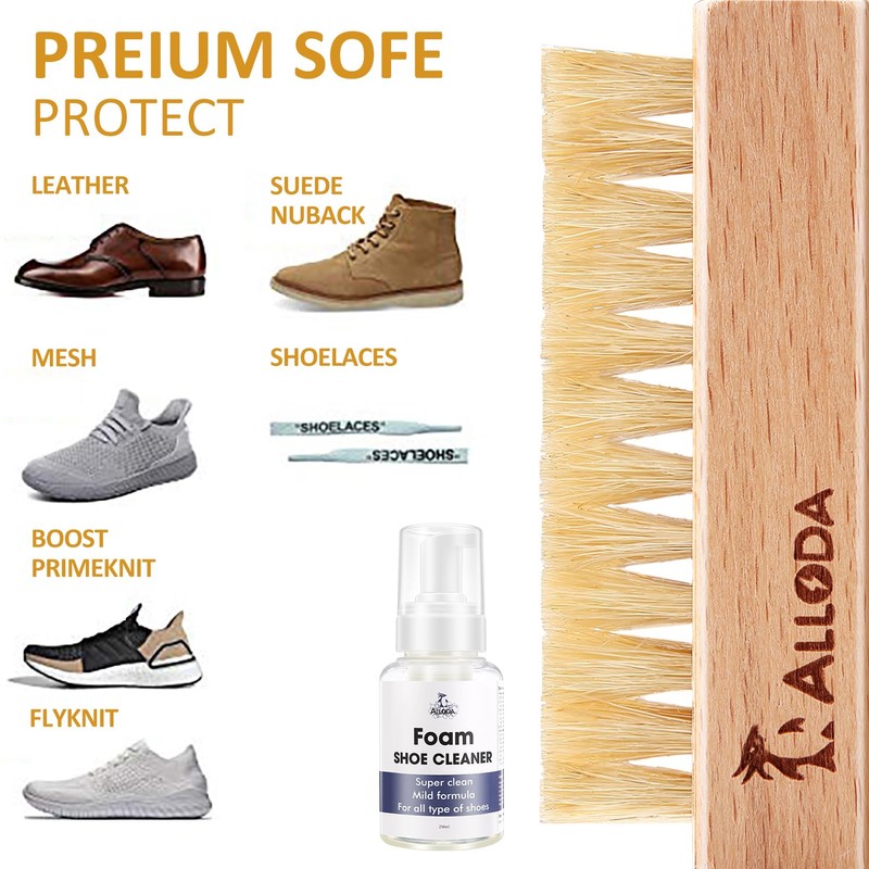 - SHINE & BRIGHTNESS: The alloda cleaning brush features four different bristles on each side, designed with the perfect softness, thickness, brass, and eraser for comprehensive shoe revival. This versatile tool effortlessly removes clay, stains, and dirt from shoe surfaces as well as textured midsoles and soles, making it a must-have for your entire shoe collection.