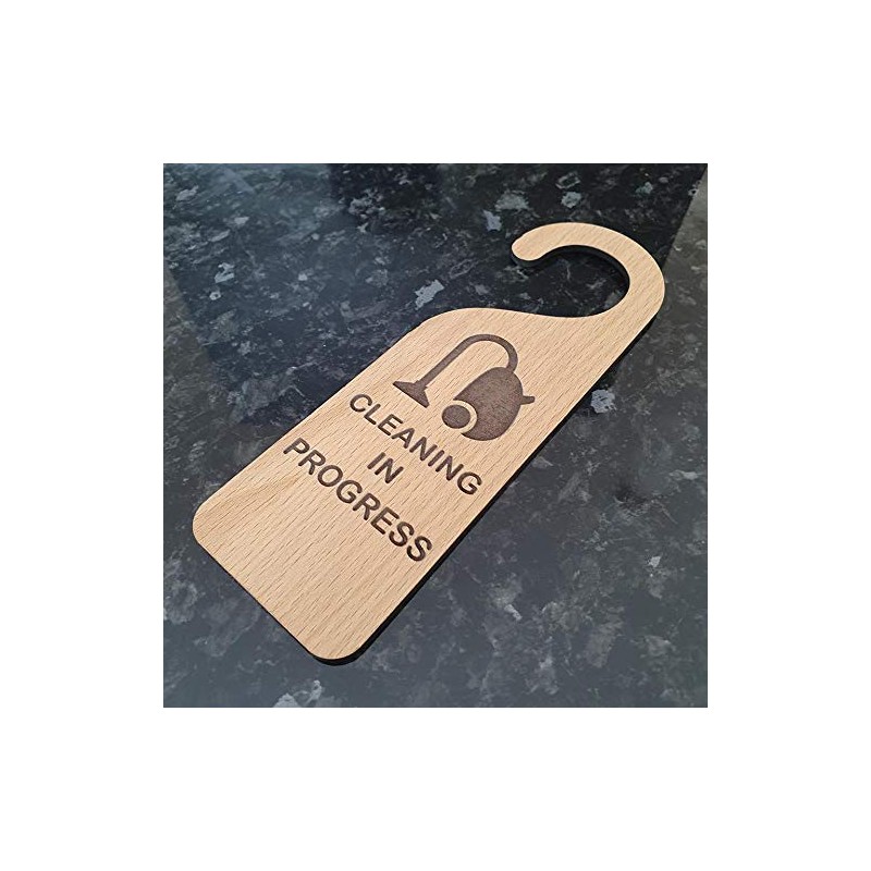 Cleaning in Progress Wooden Door Hanger Sign