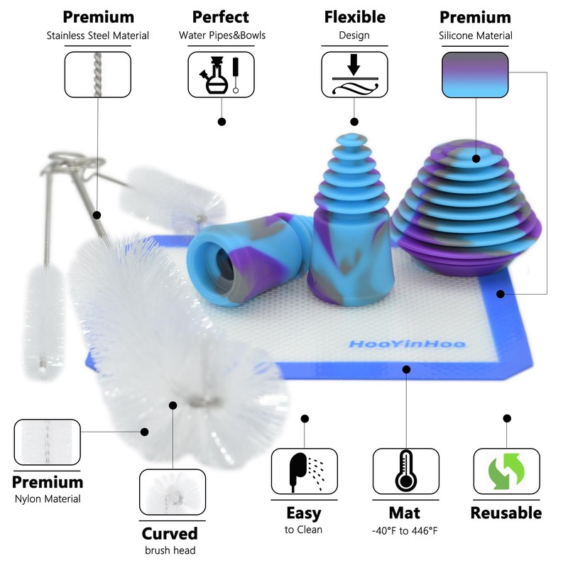 - 【Package Includes】3pc x silicone stoppers + 3pc x Cleaning Brushes + 1pc x Small Silicone Mat