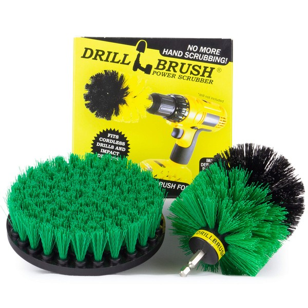 Both brushes are medium stiffness for all purpose cleaning of kitchen surfaces. These brushes should cut your kitchen cleaning and scrubbing time in half (or more) compared to the rigorous effort involved in hand scrubbing. These spin brushes also do a better job of restoring, and then maintaining your kitchen surfaces. Always look for the “Drillbrush Power Scrubber” logo to insure you are buying an authentic Drillbrush from the leader in drill powered cleaning brushes. Drill is NOT included.