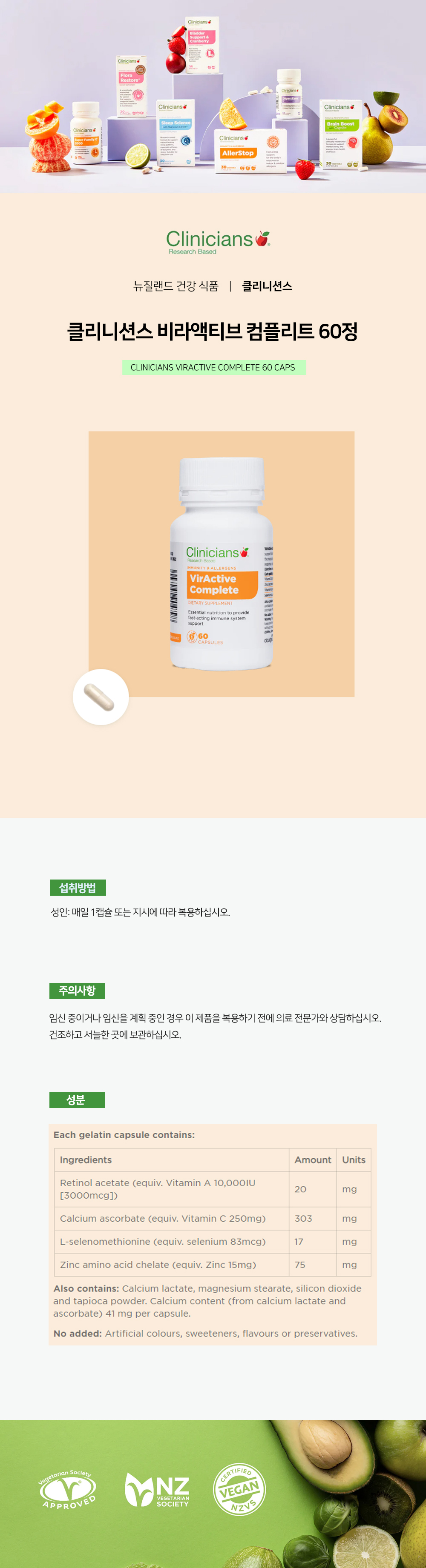 Cleanions 클리니션스 비라액티브 컴플리트 60정 Clinician's Viractive Complete 60 Tablets