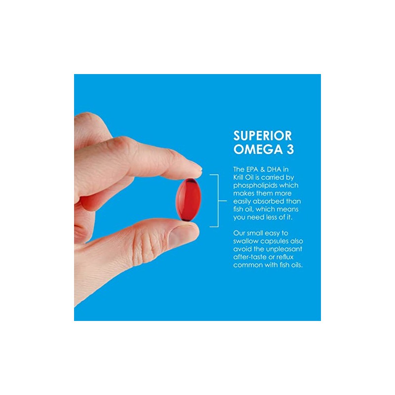 - SUPERIOR OMEGA 3 - The EPA & DHA in Krill Oil is carried by phospholipids. This is the same type of fat our cells are made from; this makes them more easily absorbed by the body.