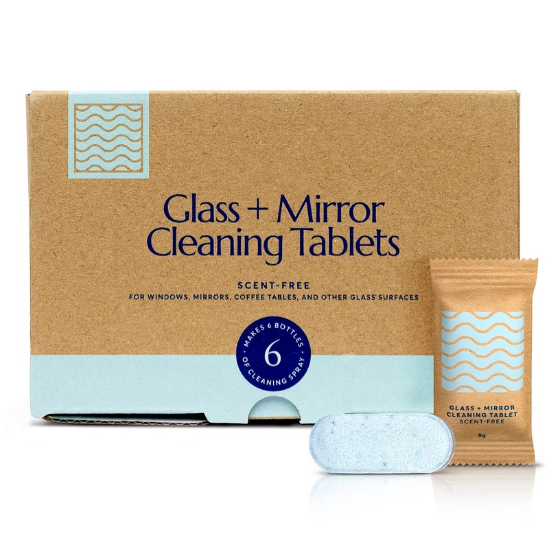 CLEANOMIC Glass and Mirror Cleaning Tablets (6 Pack) - All-Purpose Multi-Surface Household Cleaner Tablets (Scent-Free)