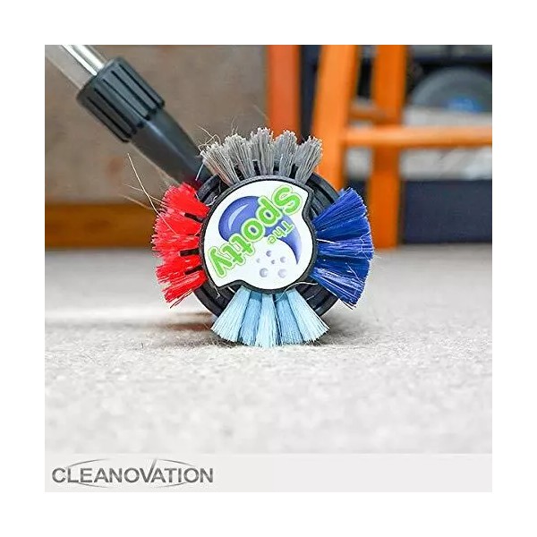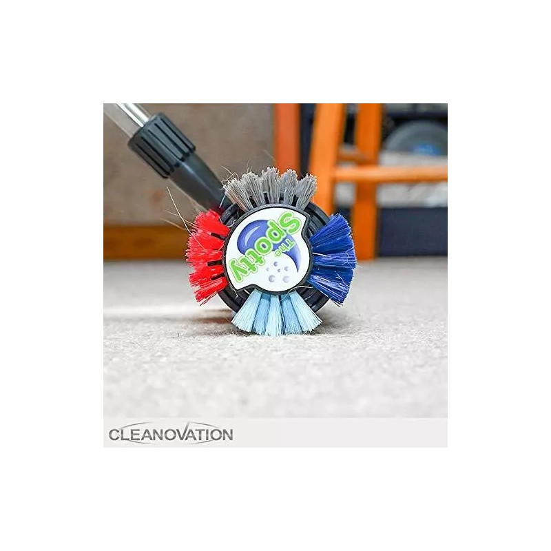 The patented SPOTTY can be used easily on carpet, tile and grout. There are 2 bristle type selections for carpets, and 2 bristle type selections for tile & grout. The adjustable telescopic pole allows you to stand and clean - you don't have to get on your hands & knees anymore!