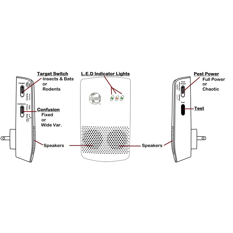 - 1) High Intensity Ultrasonic Pest Repelling Tech 2) Bat / Insect & Rodent Pest Targeting Switch