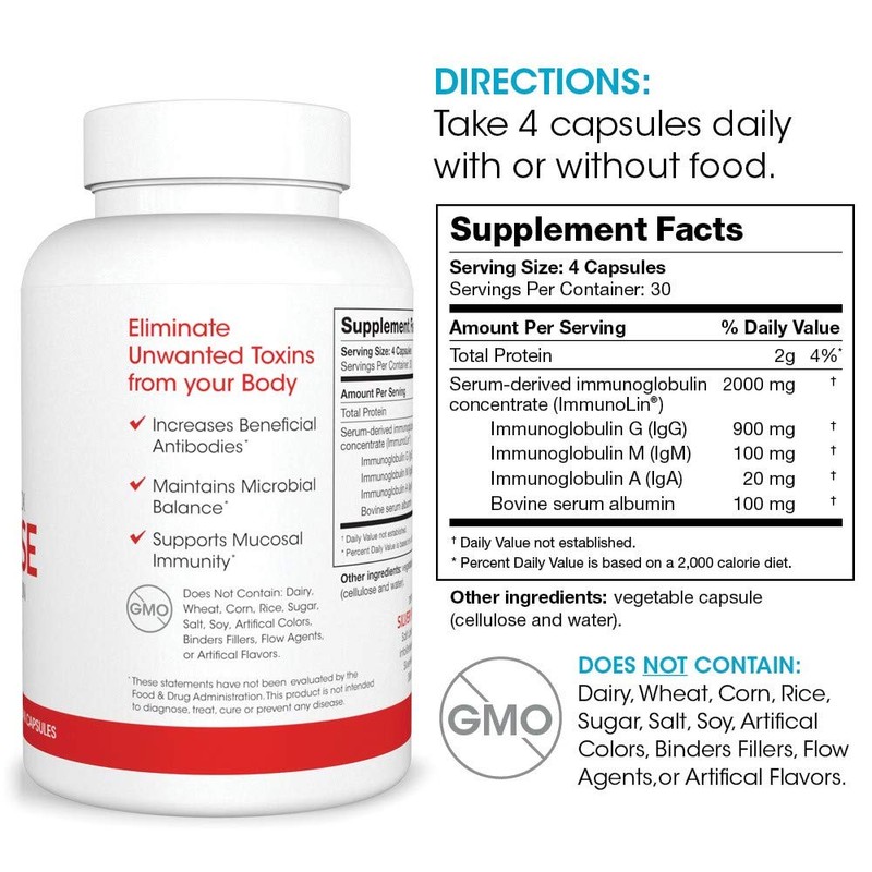 - Each Bottle Cleanse by Silver Fern Brand: 120 Capsules - 30 Day Supply - Immunoglobulin G, A & M -(IgG, IgA, IgM)