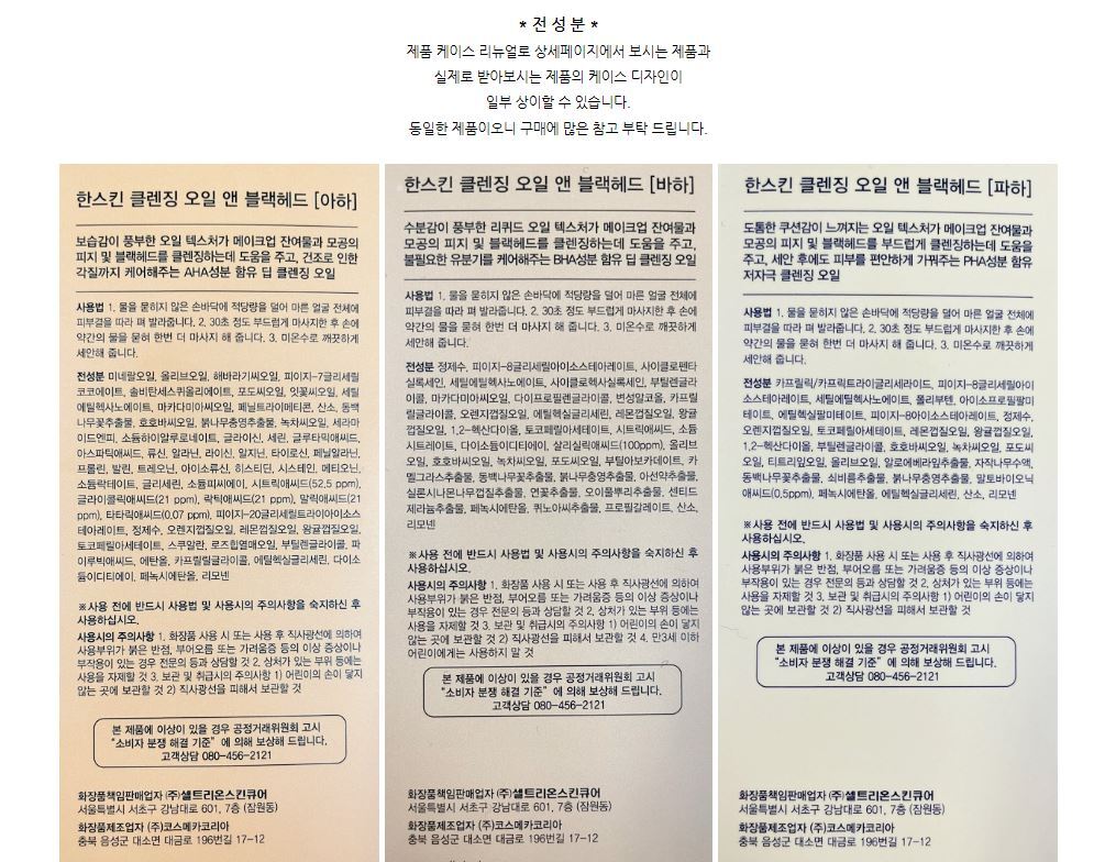 클렌징 오일 블랙헤드 300ml 3종 중 택1 건성 지복합성 민감성 산뜻한 미세먼지 메이컵 클렌저 한스킨