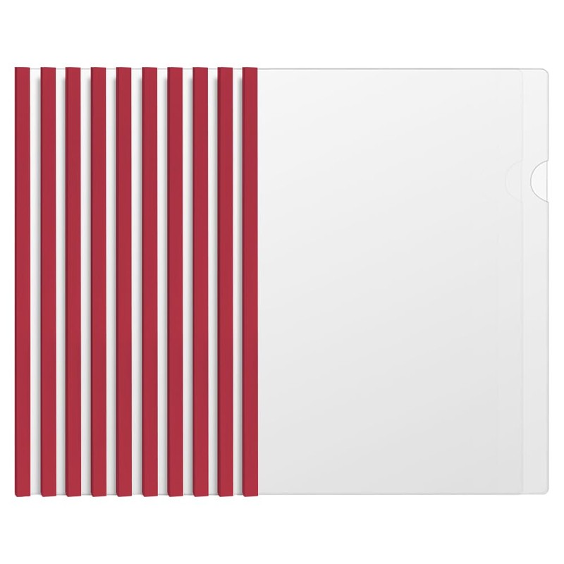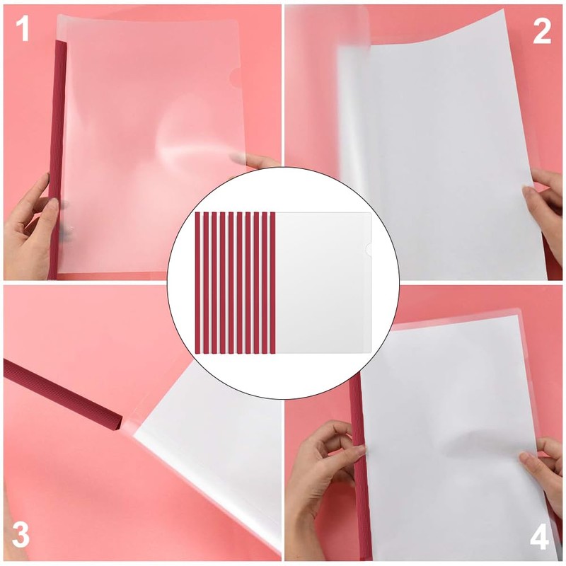 Clear A4 Sliding Bar Binder, Pack of 10 Plastic A4 Sliding Bar Binder, Transparent Sliding Folder Plastic with Sliding Bar, Folder Slider, for Office File Documents Organiser (Red)