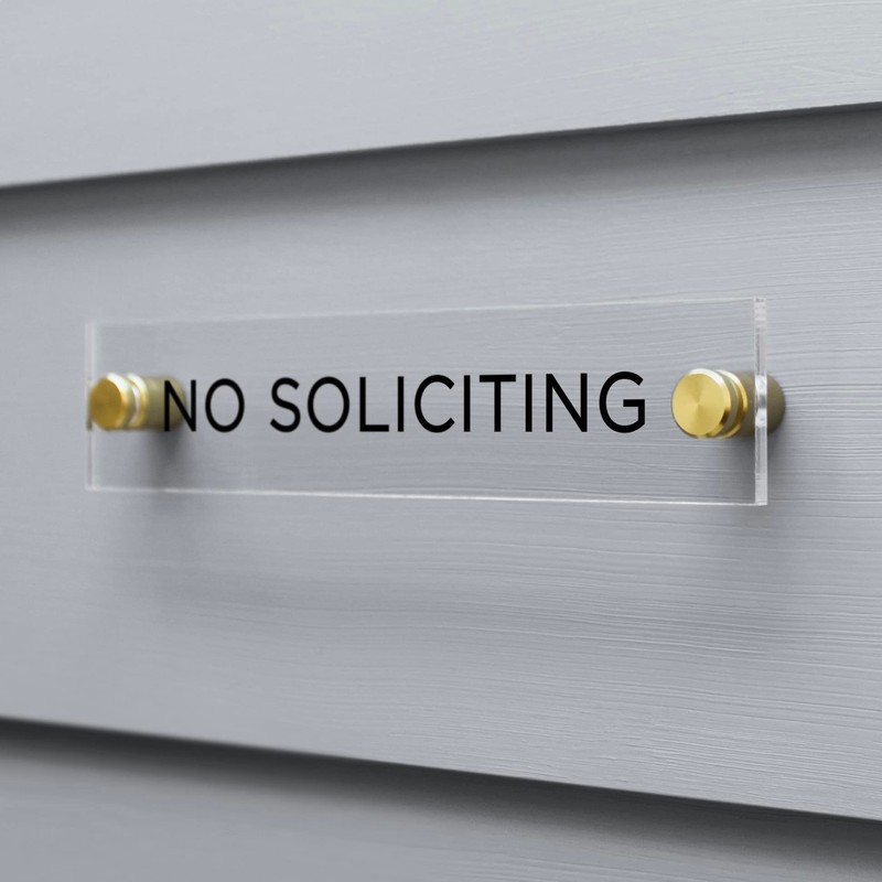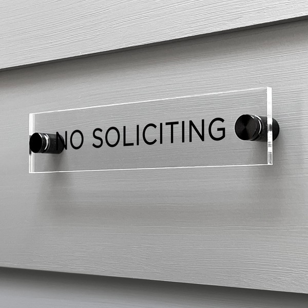 - Our acrylic No Soliciting Sign will really stand out! Modern and Minimalist, designed and manufactured in the USA, from your friends at Visibly.