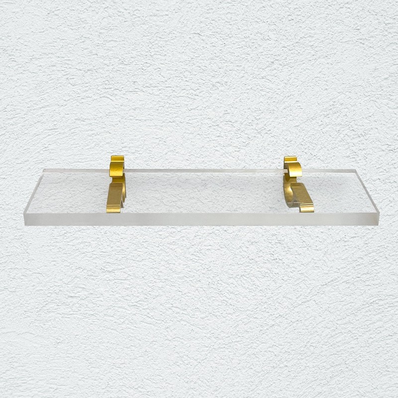 Clear Acrylic Shelves for Wall Storage, 6" W X 18" L, 3/4" Thick Wall Mounted Floating Shelves for Bedroom, Living Room, Bathroom, Kitchen -Easy Installation with Screws and Brass Finish Brackets