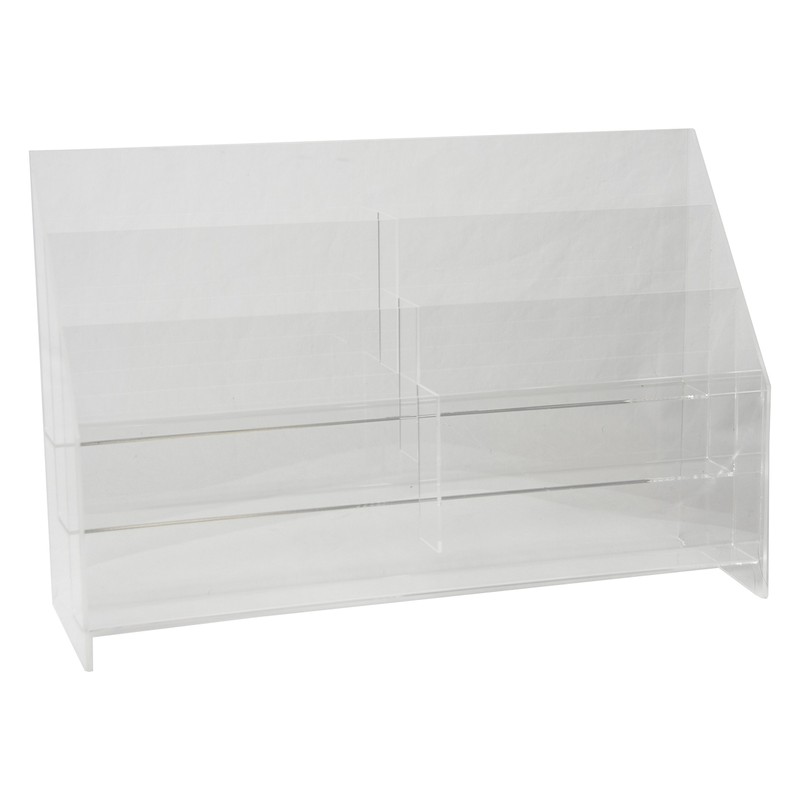 - PREMIUM PAMPHLET STAND: Clear-Ad MPF-8511-6 is a part of the premium range of clear acrylic office accessories manufactured by Clear-Ad. This listing is for a three tiered, 6 pocket brochure stand.