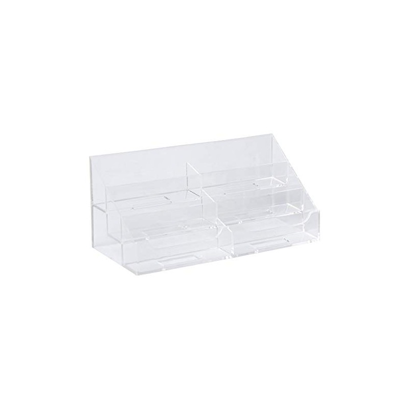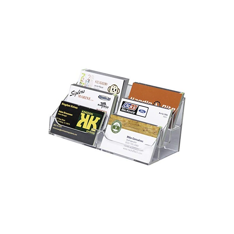 - 6-TIER BUSINESS CARD HOLDER FOR DESK: This is a very stylish looking 6-tier business card holder that would look good on any office table. Precision molding with a single piece of clear acrylic is a testimony to Clear-Ad's quality manufacturing. Each fold is precisely angled to create this beauty.