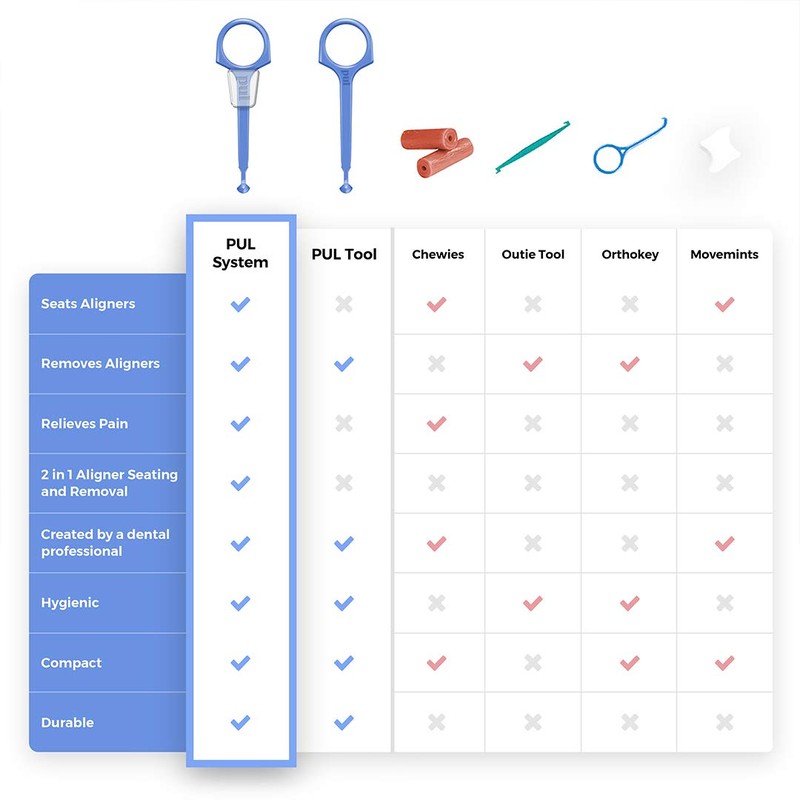 - WIDE COMPATIBILITY designed to work with Byte, ClearCorrect, Smile Direct Club and other teeth aligner brands. The Pultool also helps to remove orthodontic elastic bands, snap-on veneers, whitening trays and dentures.