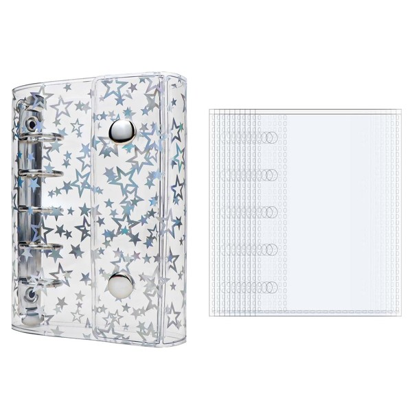 Clear Binder M5 Sealing Notebook, Cute Sticker Notebook, Refillable, Includes 10 Loose Leaf Sheets (Star Pattern)