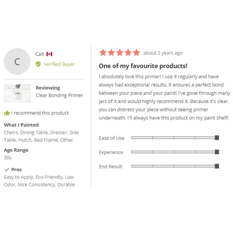 When painting a very slick or smooth furniture surface (e.g., laminate furniture, glass, metal) you may need some extra help with adhesion to ensure the paint will stick and stay put for years to come. Our Clear Bonding Primer takes the stress out of painting those tricky surfaces. It is ultra low VOC and contains no harmful solvents, phthalates, formaldehyde, or heavy metals, making it safer than many other primers. There’s no harsh smell so you can paint indoors without worrying about your health. Because this primer is clear, you can still see the natural wood color underneath which is perfect if you’re going for a whitewashed or distressed look!