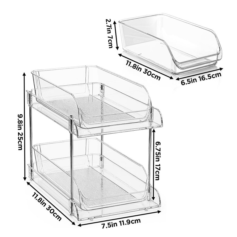 - MAXIMIZE YOUR SPACE: Effectively doubles your usable storage area vertically, helping declutter and organize any space. Each drawer measures 11.8" L x 6.5" W x 2.7" H, providing ample depth for CDs or taller items like bottles and cups.