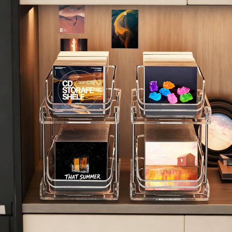 - DUAL-LAYER SLIDING DESIGN: The CD storage shelf features two smooth-gliding drawers, each easily accessible without lifting or stacking. Effortlessly pick your CDs or items!