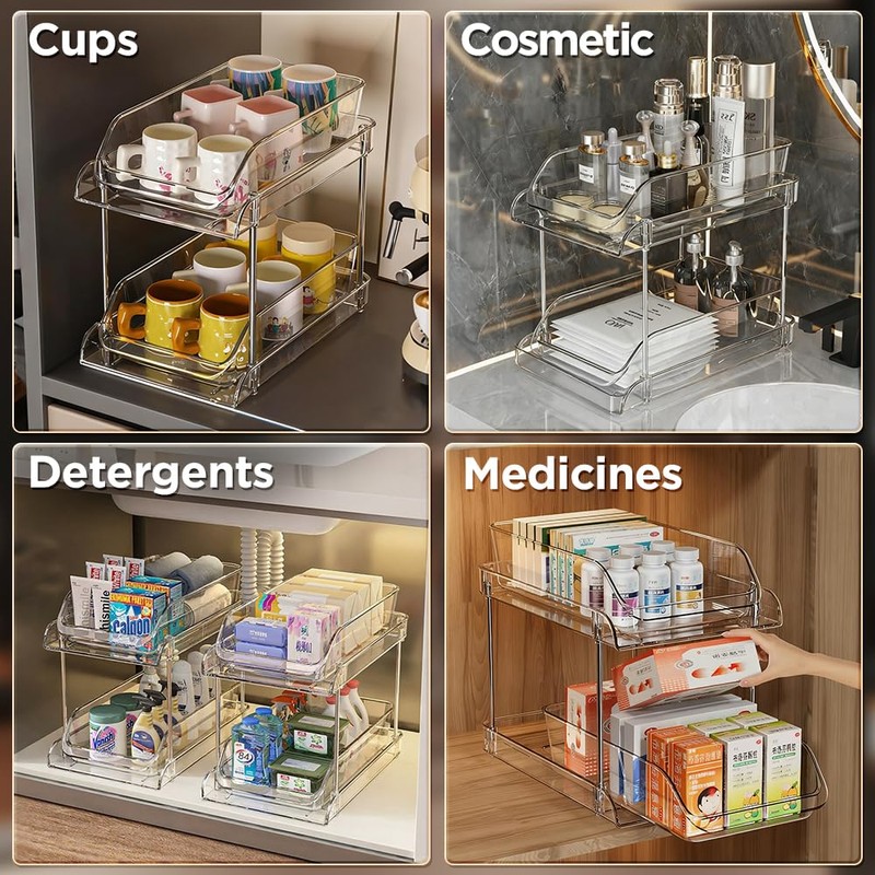 Clear CD Organizer, 2-Tier Sliding Drawer Storage Shelf - Holds 48 CDs, Versatile Organizer for CDs, Cosmetics, Cups (9.8"x11.8"x7.5")
