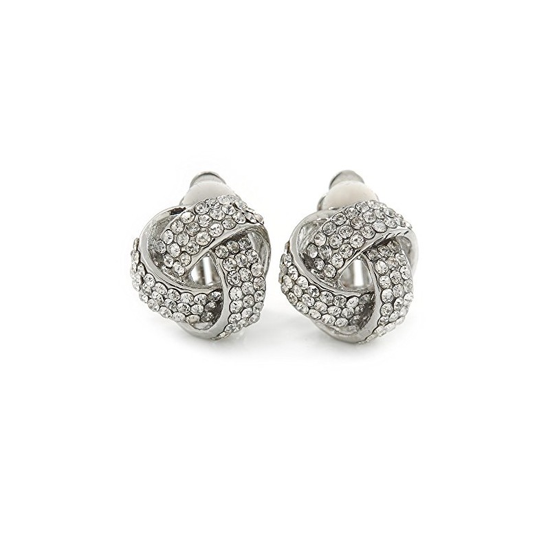 Clear Crystal Knot Clip On Earrings/Silver Tone/ 15mm L