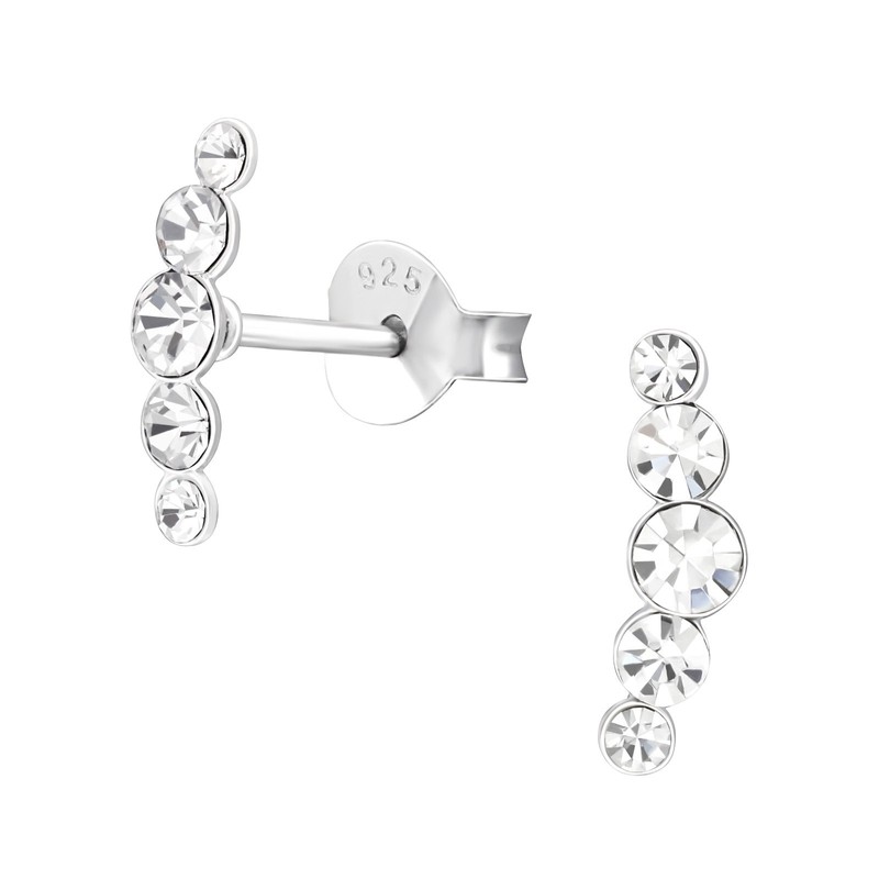 - Minimalist crawler stud earrings with clear stones. Made from hypoallergenic solid sterling silver