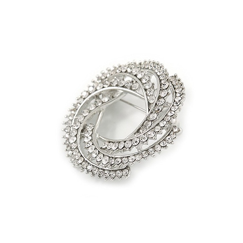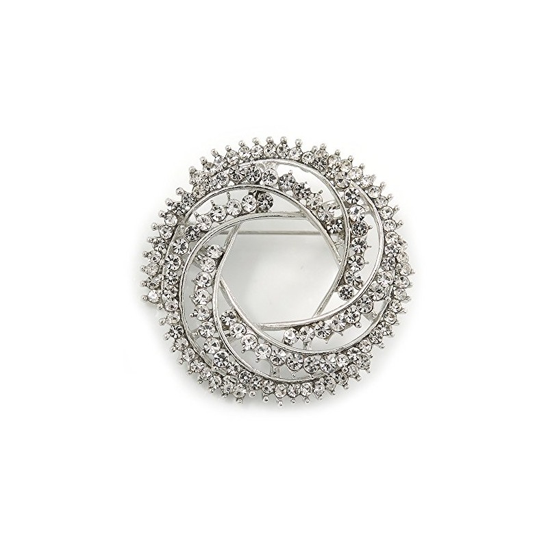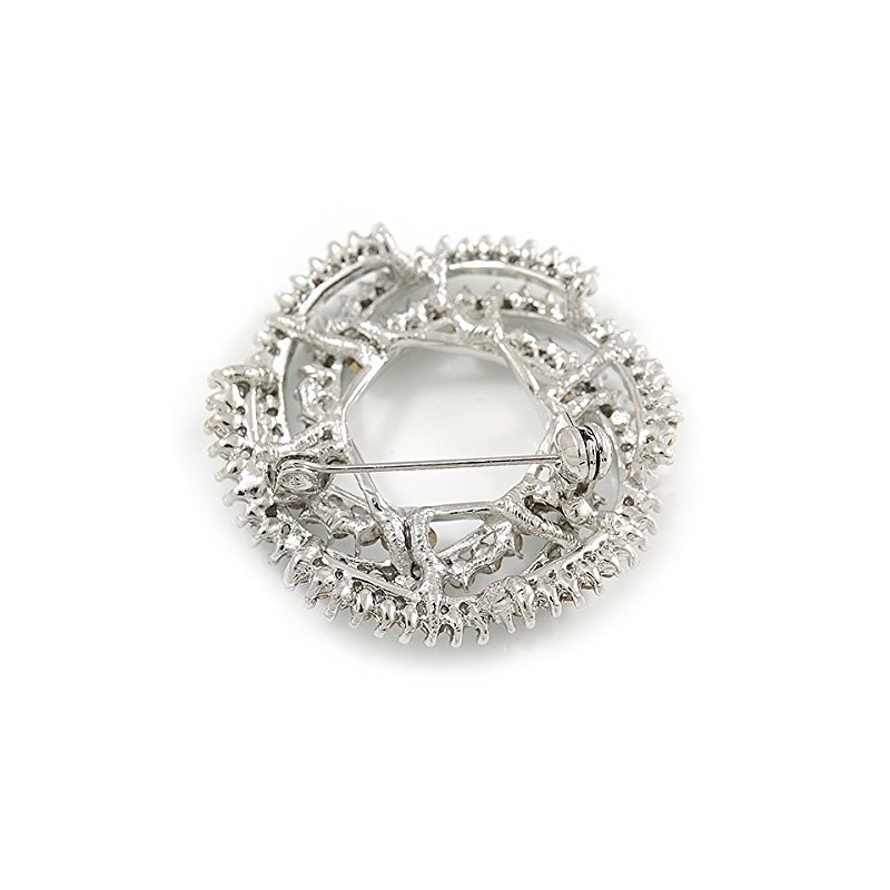 Clear Crystal Wreath Brooch In Silver Tone - 40mm Diameter