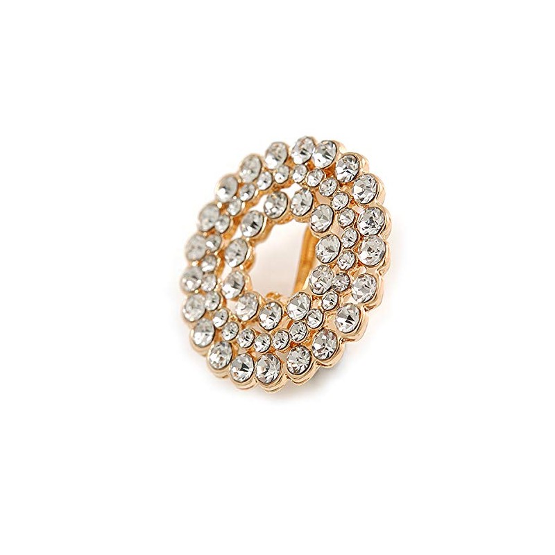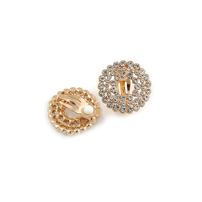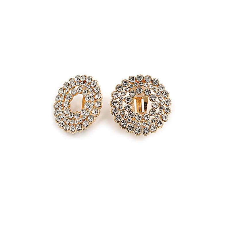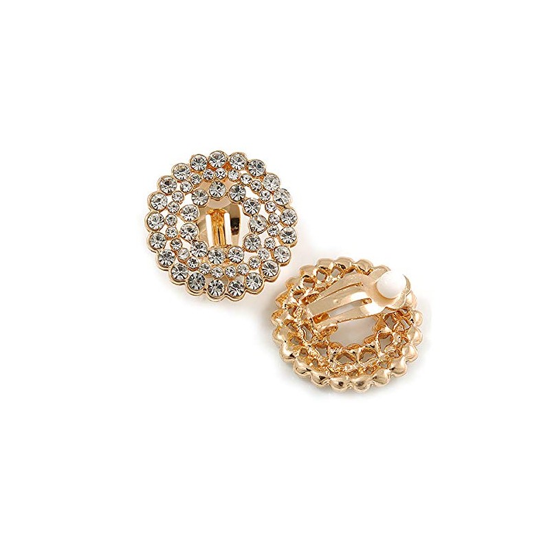 Clear Crystal Wreath Clip On Earrings In Gold Tone - 22mm Diameter