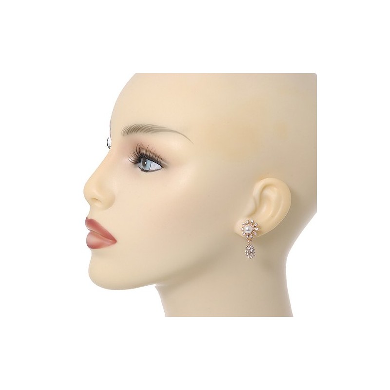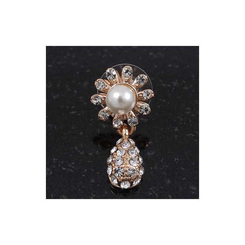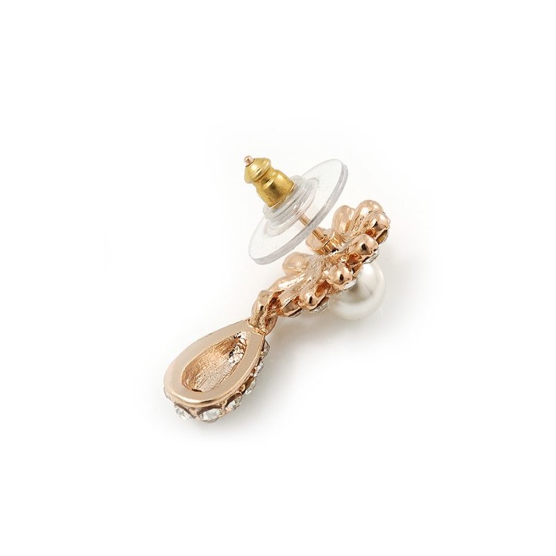 Clear Diamante Simulated Pearl 'Flower' Drop Earrings In Gold Plating - 2cm Length
