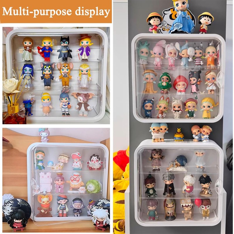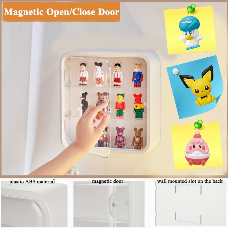 - 【Packaging And Size】 The white figure display case measures 11.8x11.8x3.15 inches. This plastic display box comes with wall sticker hooks and 20 adhesive dots, perfect for displaying your favorite action figures and collectibles.