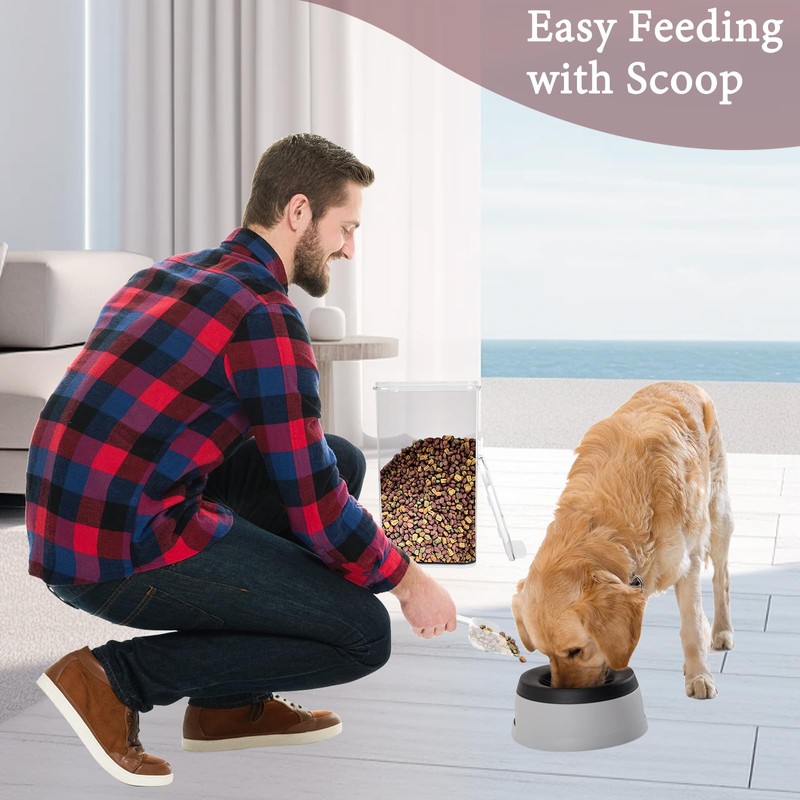 - Food-Grade Container with Scoop - The pet food storage container is made of BPA-Free and Food-Grade PET materials for safety food storage, and coming with a scoop for easily taking the food out for pet feeding