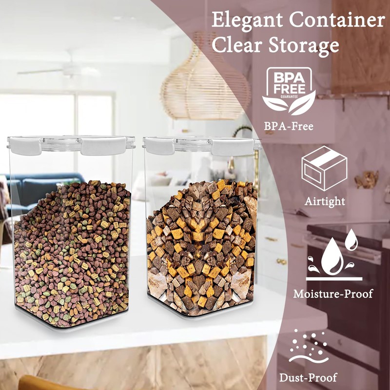 - Work More than a Pet Food Container - This clear food container can work for all kinds of food storage, like rice, cereal, flour, snacks, grain, nuts, water, drinks, etc (Capacity varies by the brand and type of food)