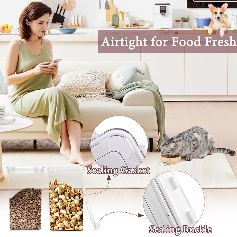 - Airtight Container with Lid and Gasket - This cat food storage container with a silicone gasket, 4-Buckle Lid for tight sealing and airtight food storage, help you keep your food fresh for a long time