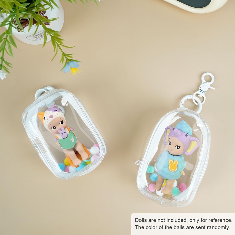 Clear Doll Display Bag Keychain Portable Hanging Figure Storage BagMystery Box Organizer Dustproof Collectibles Display Case for Showing Off Blind Boxes Mini Figures