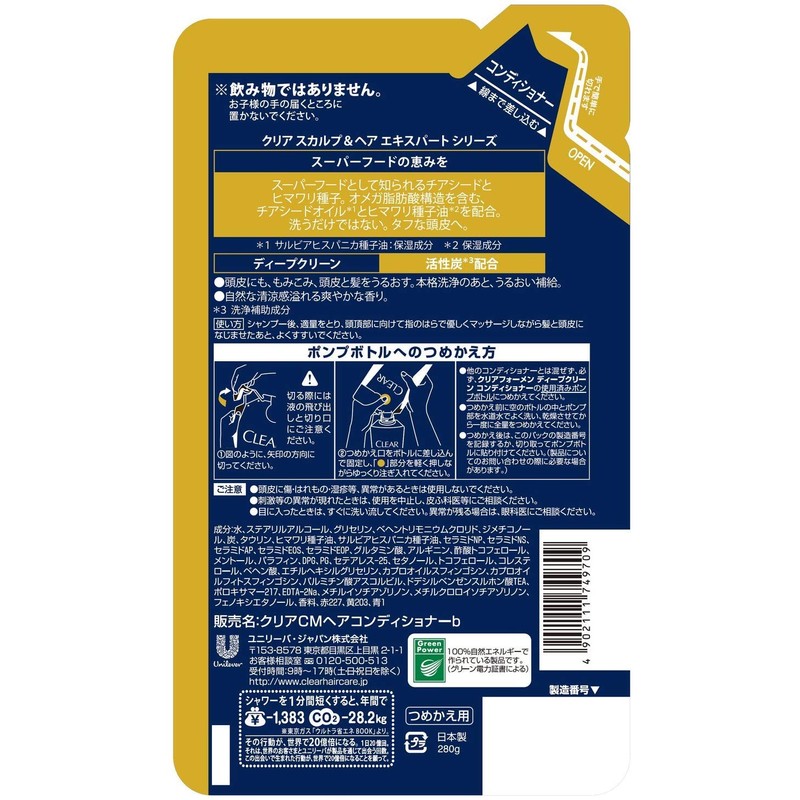 Clear for Men Deep Clean Conditioner Refill (For Tough Scalp), 9.5 oz (280 g) x 2