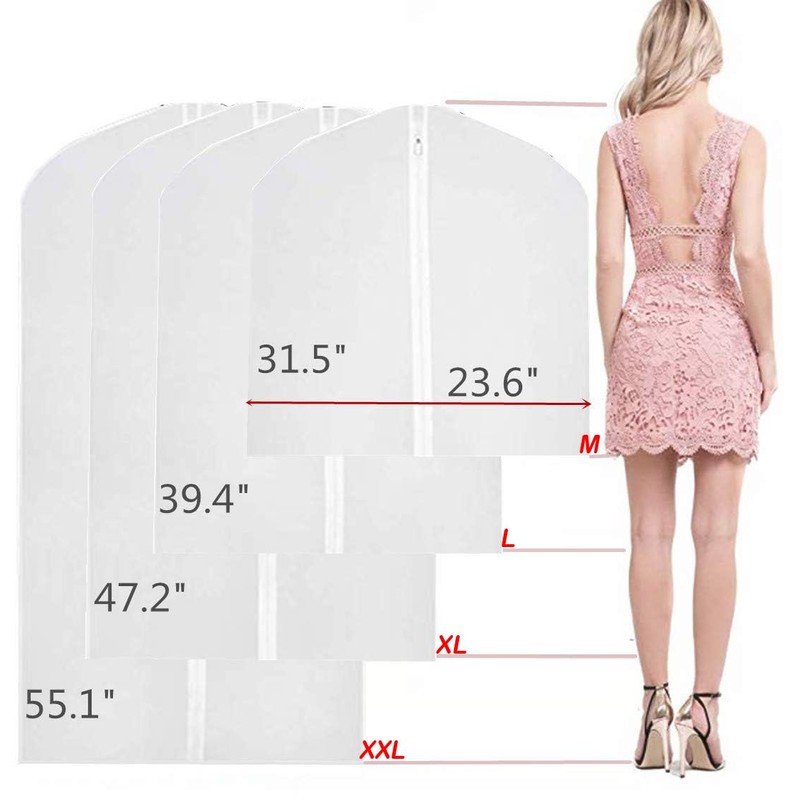 - Value Meals:Set of 4 garment hanging storage bag,including 1pcs 23.6"*31.5",1pcs 23.6"*39.4",1pcs 23.6"*47.2",1pcs 23.6"*55.1",4 different sizes meet you all needs,each of your suit or dress can have their own cover and room to breathe