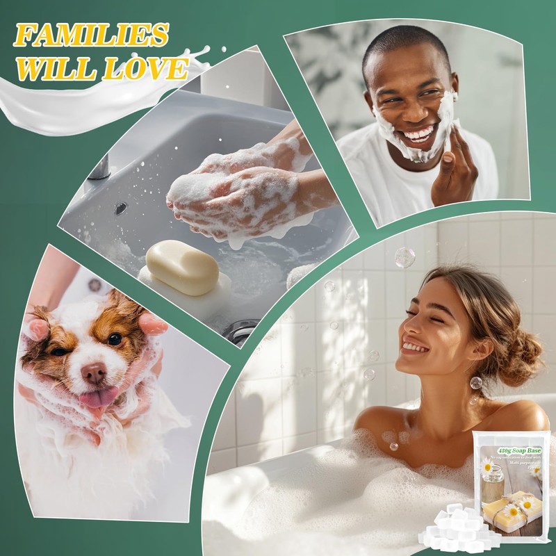 - Pre-Cut And No Sappification Reaction:Our clear soap base is pre-saponified for ease of use and ready to melt and mould. It also comes pre-cut and in chunks, so there's no need to cut it so you can control how much you use. This is perfect for beginners and DIY enthusiasts who want to make your own custom soaps at home or in a small production setting