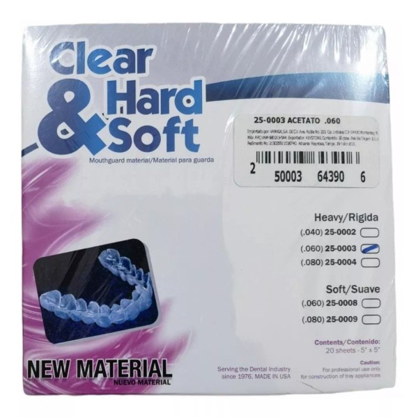 CLEAR HARD&SOFT Acetato Rígido Cal .060 Termoformado 20pza Clear Hard & Soft
