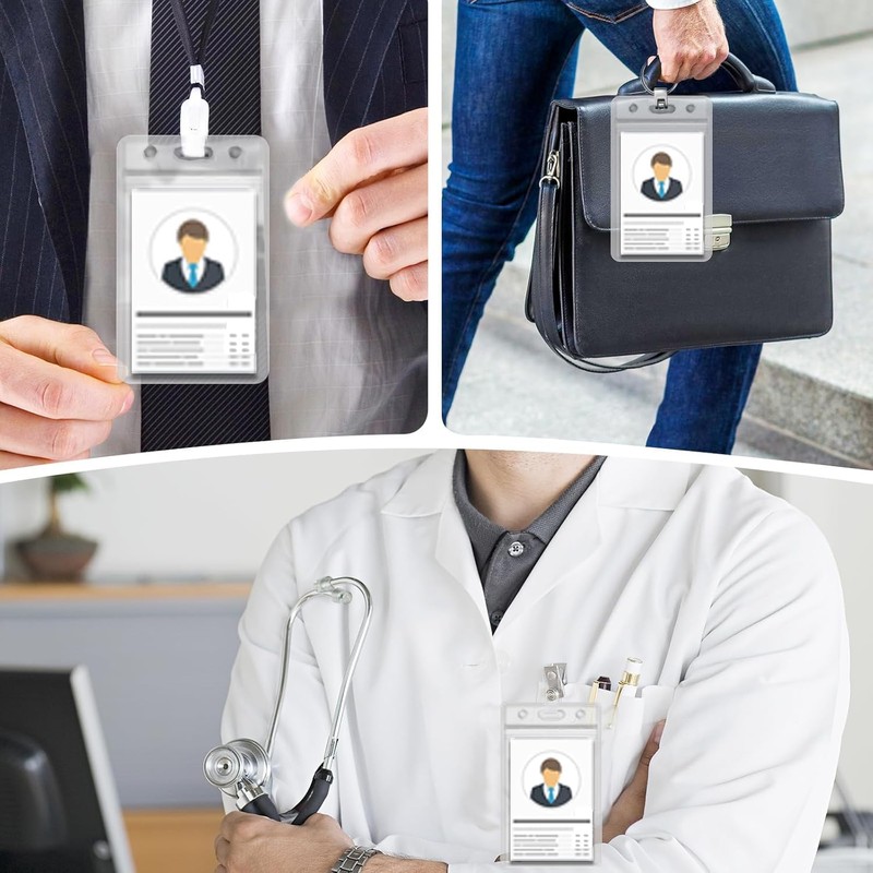 - PRACTICAL DESIGN: Vertically aligned transparent badge holders with opening for lanyards or clips