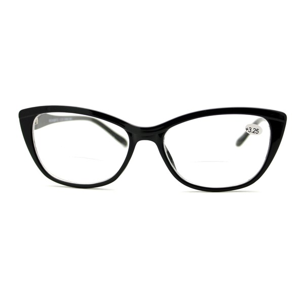 PASTL Clear Lens Glasses With Bifocal Reading Lens Womens Rectangular Cateye (black, 1.00)