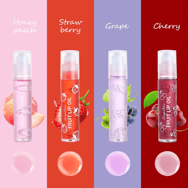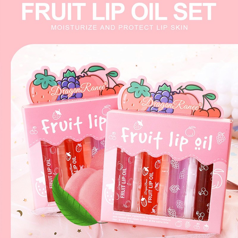 - 【Fruit Lip Oil Set】4 fruity lip glosses with delicate colours and shimmering lips, layer with lipstick for extra shine. Transparent lip gloss enhances the softness of the lip contour and gives a feeling of plumping.