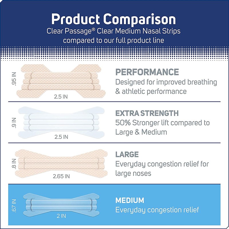 Clear Passage Nasal Strips Medium, Clear, 50 ct | Works Instantly to Improve Sleep, Reduce Snoring, & Relieve Nasal Congestion Due to Colds & Allergies